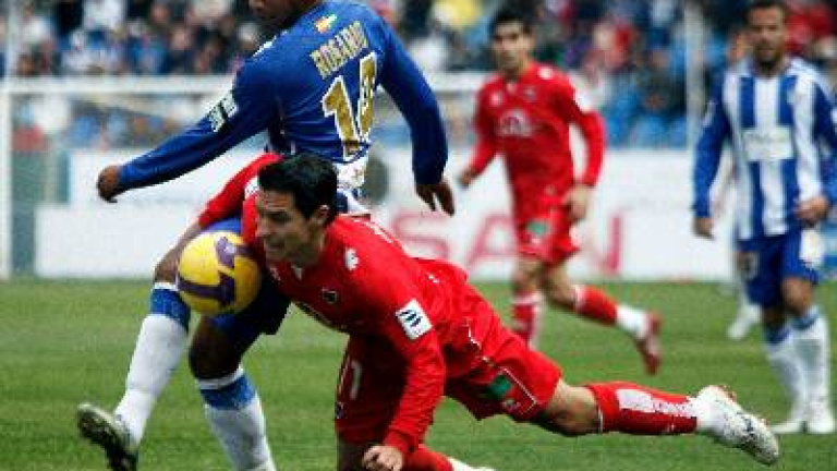 Nada más comenzar el choque, una jugada por la izquierda de Alberto Luque terminó con un remate del centrocampista portugués Eliseu Pereira, de cabeza, que se marchó fuera cuando estaba todo casi hecho.
