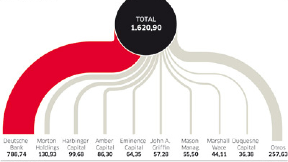 La obligación de transparencia ha permitido ver cómo los especuladores incrementaban sus apuestas a la baja en la bolsa española los días de los rumores. El último día, 16 de junio, había 1.621 millones apostados contra el Ibex. Cerca de la mitad eran de Deutsche Bank.