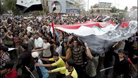 Centenares de iraquíes toman las calles de la capital en el sexto aniversario del derrocamiento de Sadam Husein. Además, reclaman la salida inmediata de las tropas invasoras estadounidenses