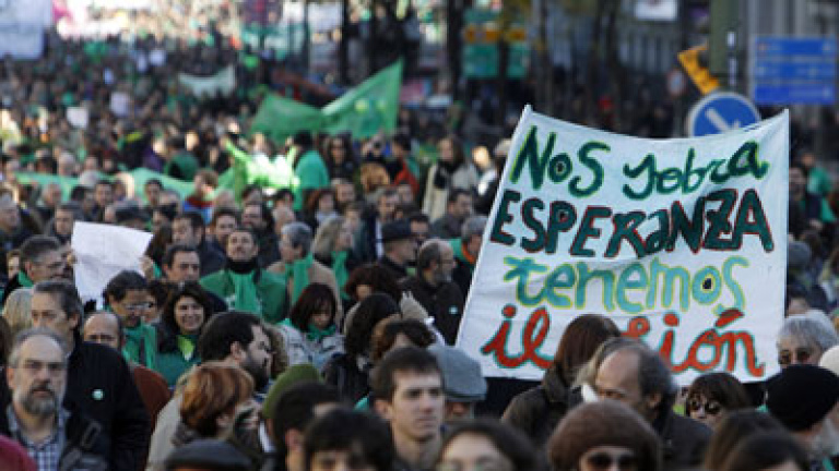 "Si la presidenta de la Comunidad [Esperanza Aguirre] asegura que Madrid cumple el déficit y que no necesita subir el IRPF, lo suyo es que retire las desgravaciones a las familias que no lo necesitan", explica el secretario general de FE-CCOO (sindicato mayoritario del sector en Madrid), Francisco García. "No nos pueden decir que la situación no permite recuperar la contratación en las plantillas porque la escuela concertada cuenta este curso con 500 unidades (aulas) más que el pasado", añade.