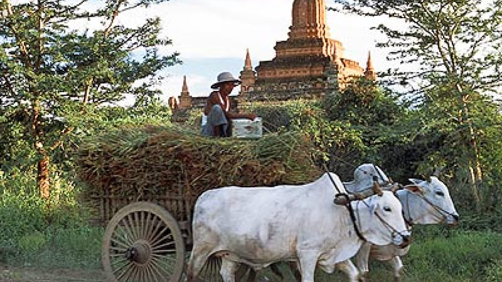Lo mejor sería llegar a Bagan en barco, navegando por el río Ayeryawaddy desde Mandalay, en un viaje de unas horas que prepara el espíritu para el encuentro con uno de los conjuntos monumentales y religiosos más importantes del mundo. Pablo Neruda, que tuvo cargo diplomático en estas tierras, decía que éste era el río con el nombre más hermoso del mundo. A media tarde, cuando el barco se acerca a Bagan, su superficie brilla como si arrastrara diamantes.