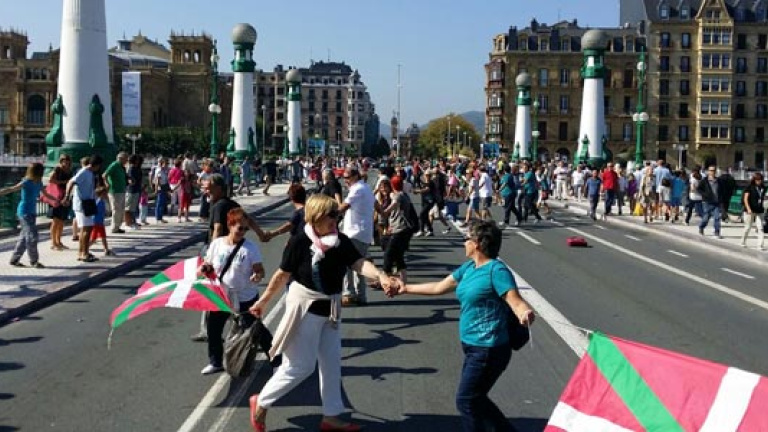 "Reconstruir puentes"Pero, ¿por qué ahora? ¿Es por el movimiento independentista que ha promovido las consultas en Catalunya y en Escocia? Mendibil trata de marcar las distancias con ambos territorios, pero sí deja entrever que el movimiento mira hacia sus colegas escoceses aunque allí reconoce que existe una "madurez democrática" que "aún está por construir" en Euskal Herria. "Todo ese trabajo que se ha hecho en Escocia lo tenemos que hacer nosotros", apunta, antes de mostrarse convencida de que "en un futuro se reconocerá el trabajo que estamos haciendo por la convivencia".