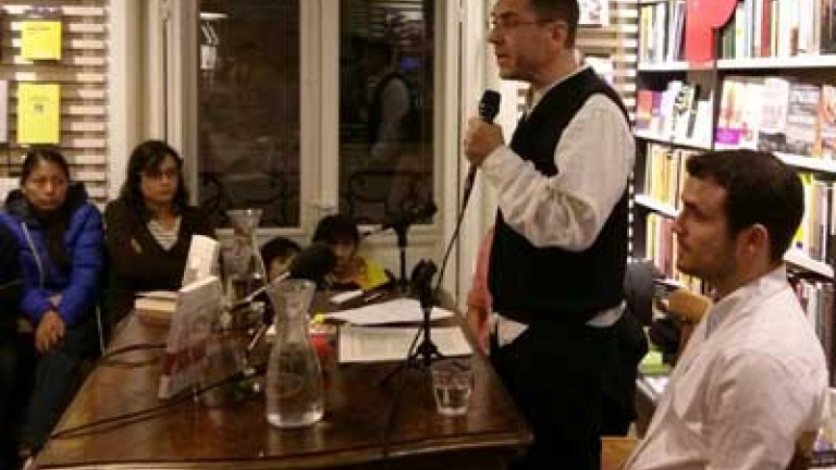 "Lo bueno de ser tantos es que si vienen los fascistas a pegarnos no caben". Así rompía el hielo ayer el politólogo Juan Carlos Monedero ante una audiencia que atestaba la segunda planta de La Central de Callao de Madrid. Acompañado por el economista y diputado Alberto Garzón y por la periodista Olga Rodríguez, el escritor presentó su último libro, Curso urgente de política para gente decente (Seix Barral), un ensayo concebido como "instrumento de acción que marque el rumbo de lo común".