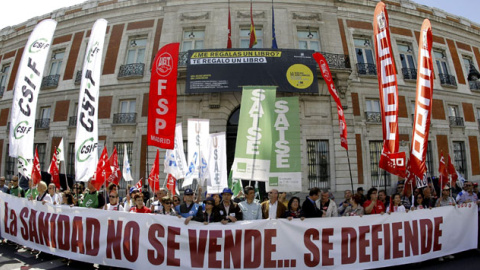 Decenas de miles de personas marchan por las calles de Madrid contra la privatización de la sanidad pública que ha puesto en marcha el Gobierno autonómico