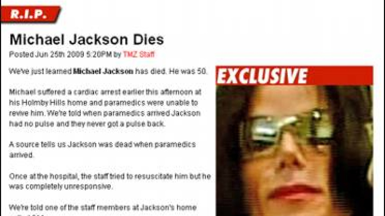 La exclusiva la daba ayer un medio no demasiado conocido, adelantándose a todos los grandes. TMZ.com, -una web con cierto prestigio en el mundo del espectáculo- hacía saltar las alarmas sobre las 23:30, hora española. Anunciaba que Michael Jackson había sido trasladado a un hospital debido a un ataque al corazón. Inmediatamente después, Google News recogía la noticia exclusiva, solamente replicada por The Huffington Post, uno de los blogs más leídos de Internet.