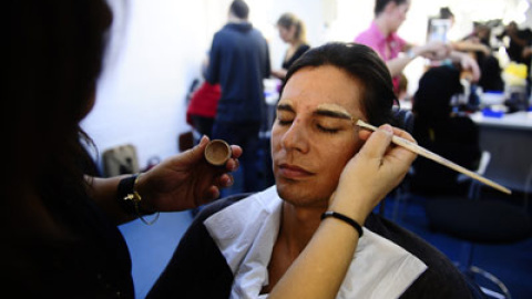 El ambiente distendido de la sala de caracterización contrasta con el del plató, donde el equipo de producción se afana en ultimar los detalles para la grabación de la gala. "Vamos a tope. Es una cuenta atrás en la que cada minuto que pasa es determinante", comenta Gisela, una de las encargadas de la producción.