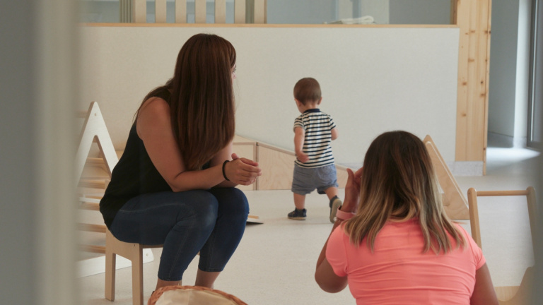 Un niño camina en las instalaciones de la nueva escuela infantil de Lezkairu, a 16 de agosto de 2022, en Pamplona. Eduardo Sanz / Europa Press