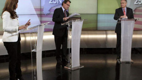 Ni una palabra sobre corrupciónSorprendentemente, candidatos y moderador evitaron también en este debate entrar a tratar, aunque sólo fuera por un momento, el tema de la corrupción, al que todos dedican apartados mayores o menores en sus actos de campaña. Ni una palabra sobre cuentas en Suiza, borradores policiales, comisiones ilegales, calumnias, investigaciones oficiales o peticiones de comparecencia. Al encontrarse frente a frente en los platós de televisión, los candidatos, esta vez sólo de CiU, PSC y PP, evitan la interpelación sobre esas acusaciones y desprecian la oportunidad de tratar cara a cara un asunto que ha trastocado la campaña de todos y que ocupa un lugar destacado desde que el diario El Mundo habló sobre la supuesta existencia de cuentas en paraísos fiscales de las que serían titulares Artur Mas y el expresidente Pujol.