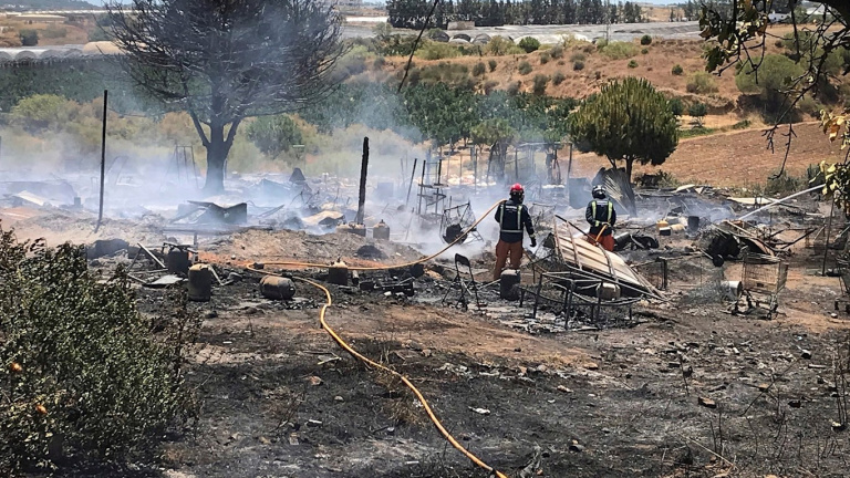 Incendios HuelvaUn nuevo incendio arrasa un campamento de migrantes en Lepe con 70 chabolas