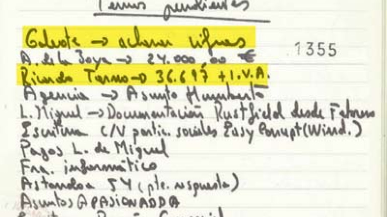 "Tarno, 36.697 euros+IVA", anotó en septiembre de 2005