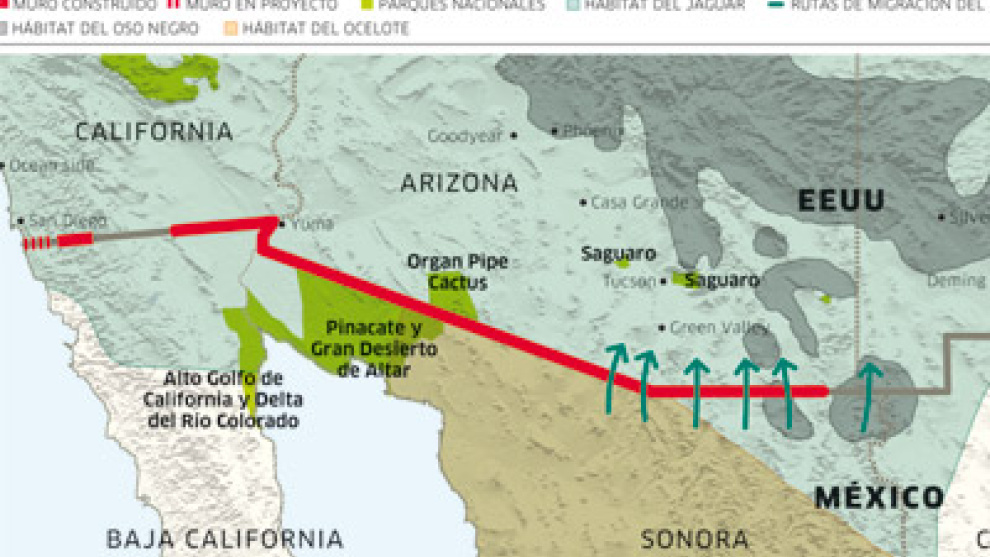 La barrera, aprobada por el ex presidente George Bush en octubre de 2006, ya ha troceado algunos de los ecosistemas más inalterados del continente. El proyecto es tan salvaje desde el punto de vista medioambiental que, según las leyes del país, es ilegal. Para iniciar su construcción, el Congreso tuvo que permitir al Departamento de Seguridad Nacional que violara decenas de leyes ambientales, incluyendo el Acta de Especies Amenazadas y la de Aire Limpio. La propuesta de Grijalva, congresista por Arizona, pretende restablecer el orden legal, "ignorado" por la Administración Bush, y dar "un primer paso para preservar el patrimonio natural único de la región al mismo tiempo que se protegen las fronteras". La receta de Grijalva es más tecnología cámaras y satélites y menos alambre de espino.