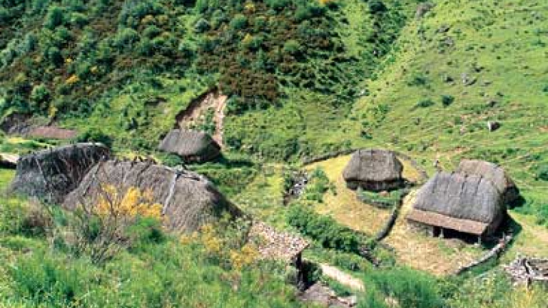 El asentamiento ganadero de la Braña de La Pornacal ofrece una estampa pintoresca en medio de la agreste naturaleza del Parque Natural de Somiedo.