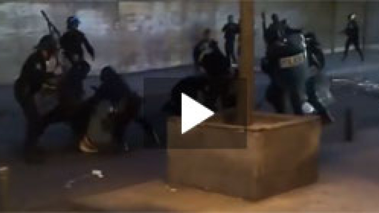 En un vídeo tras la manifestación colgado en YouTube se puede ver como varios policías aporrean a algún manifestante sin posibilidad de defenderse. Los detenidos por alteración de orden público y daños en el mobiliario urbano, han sido trasladados a la brigada Provincial de Información, según las fuentes.
