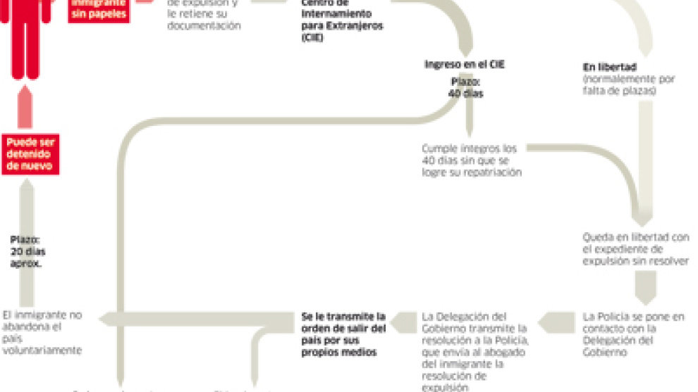 Muchos irregulares a los que se pide la documentación han sido arrestados previamente y tienen por ello un procedimiento de expulsión abierto. Esto impide que puedan ser detenidos de nuevo hasta que pase un mínimo de 40 días (plazo al que se suma el tiempo concedido para abandonar el país por sus propios medios, unos 20 días). Pasado ese periodo, si se le detiene por segunda vez, es expulsado.