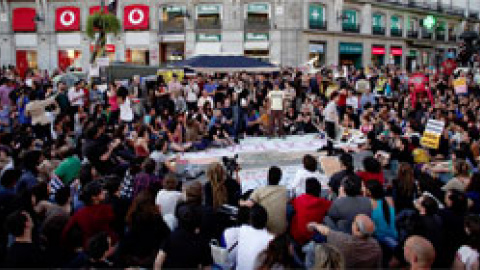 Los manifestantes iniciaron la sentada en la madrugada del lunes, después de la marcha que se celebró el domingo, convocada por Democracia Real Ya.