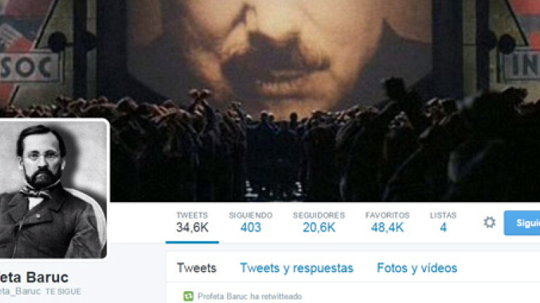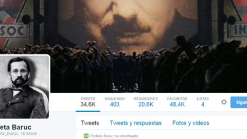 Asegura que es una persona normal que se enredó en esto de Twitter porque le venía bien un lugar donde poner sus tonterías. Allí descubrió que había más gente como él y decidió quedarse. @Profeta_Baruc, con más de 20.000 seguidores, maneja como nadie el arte de hacer reír con diálogos ficticios. Para llevarlos a cabo se disfraza del secretario del profeta Jeremías. "Lo elegí por puro azar, tenía que elegir un nombre y tenía una biblia a mano, la abrí y elegí el primer nombre que me gustó. En cuanto a sus profecías, era un profeta menor, así que sus profecías eran del tipo: me duele la rodilla eso es que va a llover, ese tipo me da mala espina no te fíes de él...", explica con humor Baruc.