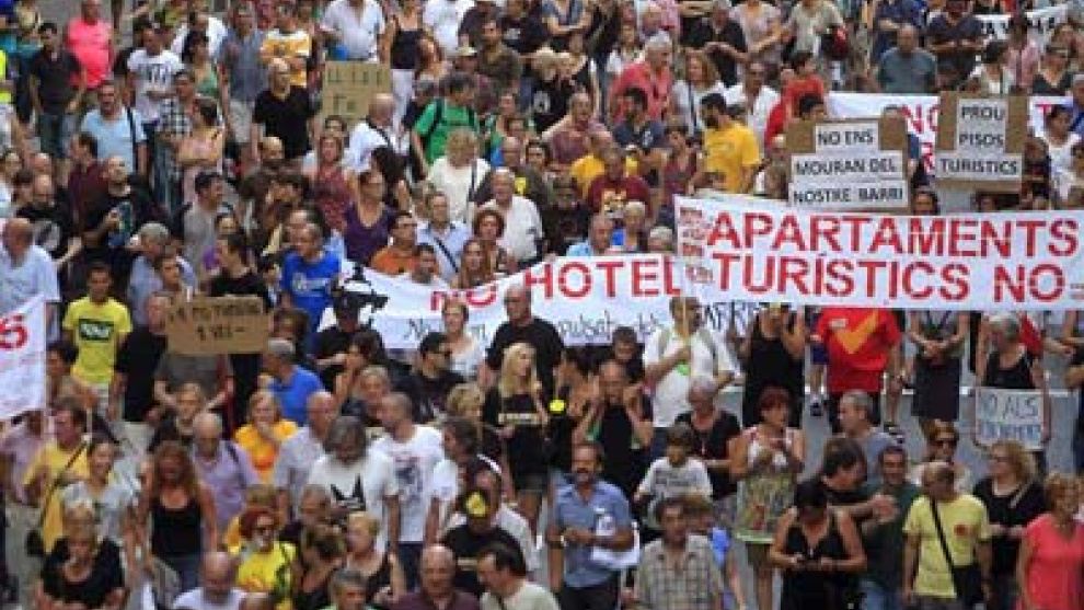 De hecho, la Federación de Asociaciones de Vecinos de Barcelona (FAVB), con el apoyo de otras entidades y sindicatos, llamó a todos los barceloneses a acudir a la marcha para expresar su rechazo a un "modelo de turismo depredador" auspiciado por los lobbies hoteleros y los grandes operadores, bajo el lema "Barcelona no está en venta".