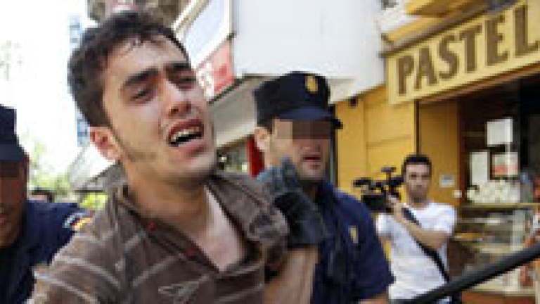 Cuando el policía le pidió la documentación, "de forma inopinada, el acompañante del requerido ha agredido violentamente, con un puñetazo en la cara, al agente". Según la nota, los manifestantes lanzaron unas tijeras y botellas de agua a los policías, con el resultado de que ocho de los 18 heridos son agentes de la Policía.