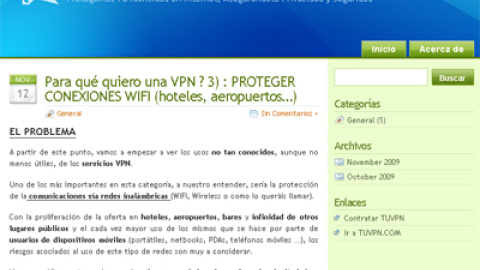 Lanzado desde Barcelona, TuVPN.com es un servicio de red privada virtual (VPN). Esta tecnología, que usan desde hace años las grandes empresas o el propio Gobierno, da seguridad a la conexión a Internet por dos vías. Por un lado, todo el tráfico entre el ordenador del usuario y los servidores de esta empresa va encriptado. Si alguien lo intercepta, sólo verá una sucesión de 0 y 1 sin sentido. En una segunda fase, del servidor VPN hasta Internet, los datos van al descubierto, pero la dirección IP (que identifica al PC en la Red) se cambia por una de otro país. Esto impide relacionar el tráfico con la identidad de una persona determinada.