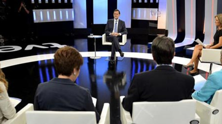 Después de ocho meses de Gobierno, el presidente Mariano Rajoy ha concedido su primera entrevista a seis periodistas en TVE (María Casado, de Los Desayunos de TVE; Anabel Díez, de El País; Victoria Prego, de El Mundo; Ignacio Camacho, de ABC; Carmen del Riego, de La Vanguardia, y Pilar Gómez, de La Razón). Sin salirse apenas de las líneas habituales de su discurso sobre un rescate que no está decidido y sí en proceso de estudio, Rajoy ha asegurado que "no tiene interés en tocar las pensiones" y que ha dado instrucciones al ministro de Hacienda, que está diseñando los Presupuestos Generales del Estado (PGE) para 2013, para que siga esta prioridad.