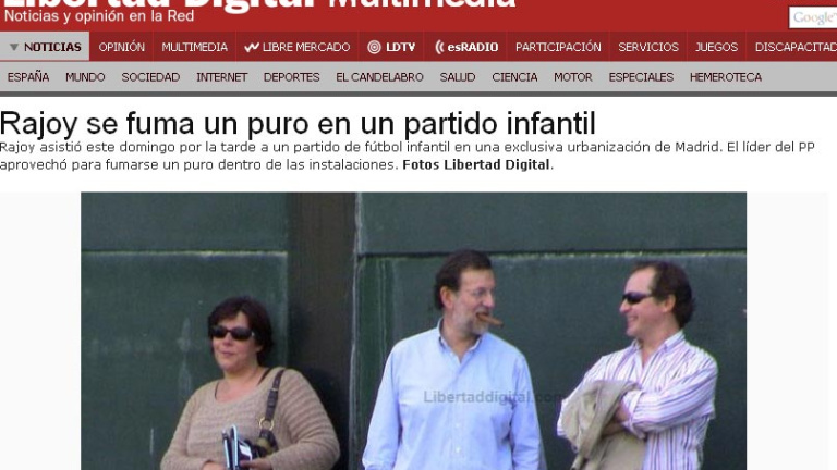 El líder del PP, Mariano Rajoy, ha sido cazado fumándose un puro en un partido de fútbol infantil, tal y como muestran unas instantáneas publicadas por Libertad Digital.