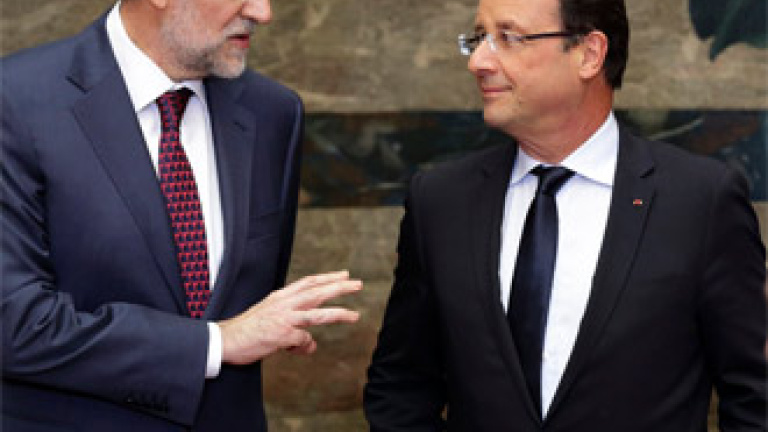 Mariano Rajoy ha acudido hoy a El Elíseo a intentar hacer copartícipe a François Hollande de su descontento con las autoridades europeas. Al fin y al cabo, el mandatario francés está más sensibilizado después haber visto las orejas del lobo detrás de su economía, que, por primera vez desde 2009, se contrajo un 0,1%. Ayer, Grecia y Portugal; hoy, España e Italia; mañana, quién sabe, pero ninguno de los miembros del Eurogrupo está a salvo de caer en el abismo de la deuda, el de la salida más difícil por cuanto, como razonan vehementes en el Ejecutivo, es una patada al euro "en el culo de cada país".