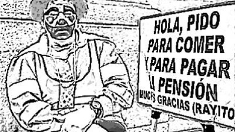Antropología monetaria. "Ya no hay humanidad por las personas. Yo no pido limosna, doy una imagen. Qué más le da darme cincuenta céntimos o lo que puedan, si luego se lo dan a los romanos", se queja Rayito, que gira el visor 180 grados en busca de la competencia, que él entiende como mendicidad, antes de señalar aquí y allá. "Yo hago mímica, aunque estos días hace mucho frío", alega desde su banqueta. "También soy dibujante, cantaor flamenco y guitarrista. Iba por terrazas, cafeterías y mercados, pero lo dejé porque no daba. Digamos que soy polifacético artista". Y, desde hace 22 años, payaso de ceño compungido, rostro apesadumbrado y tristura honda. "Me dicen mucho lo de payaso triste, y a veces lo he estado, lo que pasa es que soy muy serio. Y no voy a estar riéndome mientras pido dinero", razona.