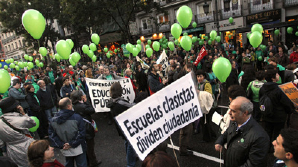 Octava jornada de huelgaPor otra parte, los sindicatos de enseñanza en Madrid vuelven esta semana a la carga en protesta por los recortes educativos del Gobierno de Esperanza Aguirre. Una huelga en Secundaria y Primaria está convocada para el próximo jueves por los recortes de plantillas. Además, una manifestación frente a la Consejería ha sido planteada por la tarde, para culminar la octava jornada de huelga de protesta en Madrid desde el inicio de curso.