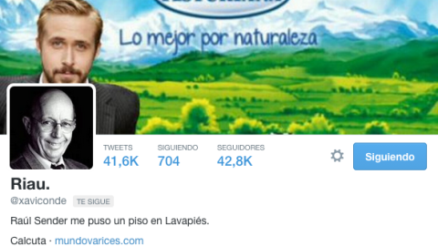 Tu perfil en Twitter es bastante desconcertante: Ryan Gosling, en un anuncio de leche como cabecera; el actor Max Wright (Alf) como foto de avatar; la frase "Raúl Sender me puso un piso en Lavapiés" como descripción y para, coronar todo, la web mundovarices.com como enlace. ¿Tiene algún sentido que nos puedas aclarar?