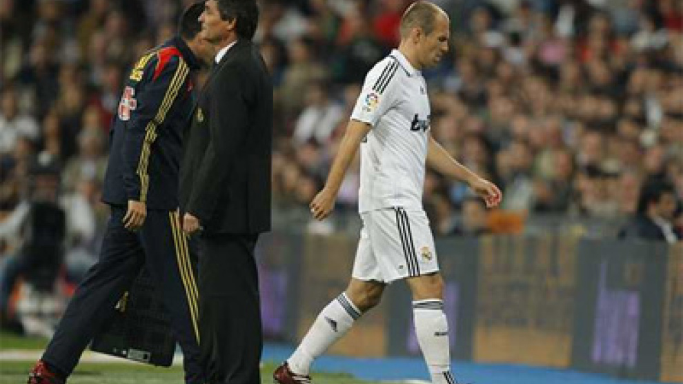 El holandés del Real Madrid Robben estará de baja las próximas tres semanas tras la lesión sufrida ayer en el patrtido contra el Getafe.