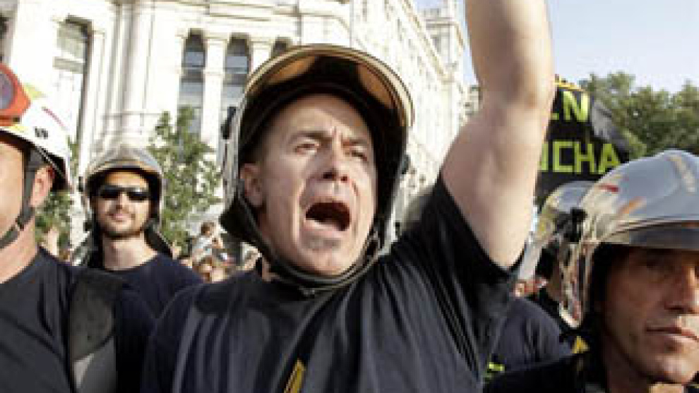 Entre los manifestantes destaca un numeroso grupo que viste de policía, aunque no con el uniforme de trabajo. Cientos de ellos se han unido a las marchas que han recorrido España, en Madrid su presencia ha sido más que notable. “Cuando a uno no paran de quitarle lo suyo, hay un momento en el que tiene que decir basta y salir a la calle”, cuenta Fernando Bello, policía municipal de una pequeña localidad de Madrid que no quiere descubrir. Fernando es consciente de que su presencia ha sorprendido a algunos, aunque él asegura que es la tercera vez que sale a la calle a protestar este verano. “Tanto yo como mis compañeros estamos hartos de esta situación. Algo tiene que cambiar”, añade.
