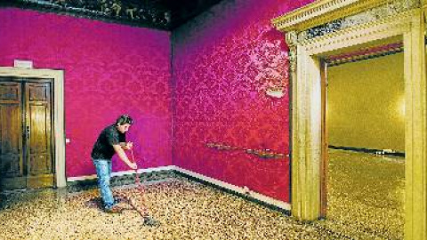 La fregona raspa ásperamente el suelo del pabellón de Venecia que acoge el último trabajo de Teresa Margolles (Culiacán, 1963). La artista, que representa a México en la 53 edición de la Bienal de Arte, ha llenado un cubo de agua con la sangre de los muertos por el narcotráfico de su país, y un hombre limpia con ella el suelo. Es una de las instalaciones de la muestra ¿De qué otra cosa podríamos hablar, si no?