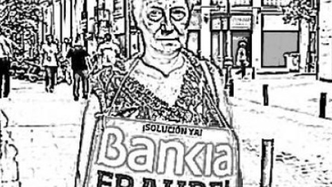 Así lleva tres años Elvira González (Hoyo de Pinares, 1945), que luce con resignación el cartel que cuelga de su cuello: Bankia Fraude. ¡Somos ahorradores, no inversores! Ella sí que podría encajar en el perfil del humilde trabajador que vive de una magra pensión y tiene sus pocos cuartos a plazo fijo, por lo que pueda pasar el día de mañana: pagar un geriátrico, echarle una mano a un hijo necesitado, hacer frente a un imprevisto... Hasta que a finales de 2011 estalla el escándalo, los medios se hacen eco y Elvira le pregunta a su marido: "Oye, ¿no tendremos eso nosotros? Y, efectivamente, lo teníamos".