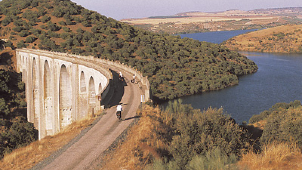 Iba a conectar Talavera de la Reina, en Toledo, con Villanueva de la Serena, en Badajoz. Dos localidades a la vera de ríos de postín, el Tajo y el Guadiana, que más de ochenta años después del plan que concibió ese proyecto de ferrocarriles se preguntan, asombradas, qué se pensaba transportar en ese tren que discurriría entre territorios hoy marcados por la soledad. Nunca ningún viajero transitó por esas vías, pero hoy son muchos los que lo hacen por la vía verde que se ha acondicionado en su parte toledana: la de la Jara. Cincuenta y dos kilómetros de recorrido entre los Montes de Toledo y el macizo extremeño de las Villuercas, en medio de tierras vírgenes que nos llevan a caminar por las orillas del Tajo o las frondosidades de la Sierra de Altamira.