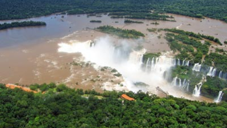 Repartidas entre Argentina y Brasil, además de próximas a la frontera entre Paraguay y Argentina, estas espectaculares cataratas están formadas por 275 saltos de hasta 80 metros de altura que se alimentan por el caudal del río Iguazú. Bajo sus saltos es posible realizar paseos en lancha y en su entorno caminar por senderos apreciando animales de la selva semitropical. Unespectáculo aparte es su salto de mayor caudal, además del más alto: lagarganta del Diablo, el cual se puede disfrutar en toda su majestuosidad recorriendo las pasarelas que parten desde Puerto Canoas, al que se llega utilizando el servicio de trenes ecológicos.