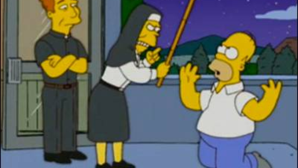 En ese episodio, titulado 'Padre, hijo y el santo invitado', Bart es expulsado del instituto de Springfield y Homer y Marge deciden enviarle a una escuela católica.