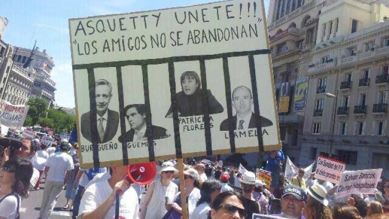 12.05: Las pancartasrezan lemas como "Privémonos de privatizadores" o "Salvan bancos, cierran hospitales"