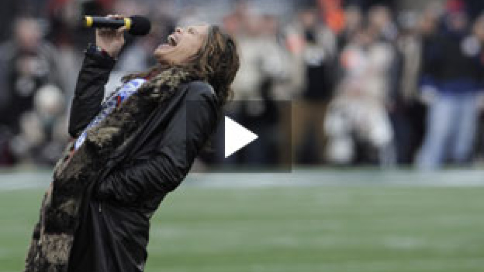 El líder de Aerosmith desafinó y equivocó la letra durante la interpretación antes de un partido de fútbol americano