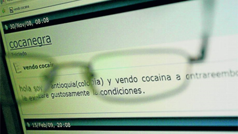 Si se teclea "vendo cocaína" en un buscador de Internet, la red devolverá las direcciones de nada menos que 514.000 páginas webs. De ellas, más de 83.000 son españolas. A poco que se navegue por alguna de ellas, en pocos minutos uno se encontrará dentro de foros y chats donde los mensajes son directos: "Hola, soy de Antioquia(Colombia) y vendo cocaína a contrareembolso desde España". "Vendo cocaína pura traída desde Bolivia y paises aledaños, con 95% de pureza. Garantizamos el envío y su llegada a España".