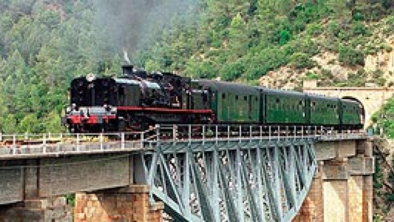La Garrafeta es una locomotora de vapor histórica construida por Renfe en los años sesenta siguiendo un diseño original inglés de 1930 y que llega a un máximo de 60 kilómetros por hora. A esta velocidad se disfruta de un viaje inolvidable por las tierras de Lleida hasta llegar a los lagos del Pirineo, pasando por los embalses de Sant Llorenç, Camarasa, Cellers y Sant Antoni, bordeando el río Noguera Pallaresa y cruzando los impresionantes desfiladeros de Terradets y Collegats.