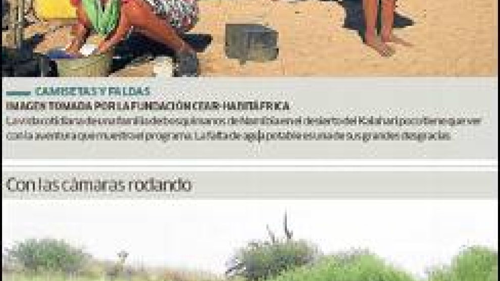 El programa presenta a los indígenas como una población que caza con arco camuflada de leopardo. Una imagen muy alejada de la realidad que narra la cooperante, que sostiene que la subsistencia de estos bosquimanos pasa por los 30 euros que reciben de pensión al mes.