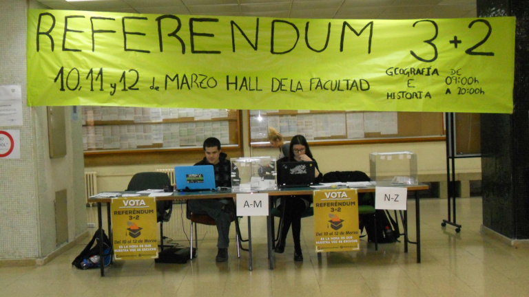 MADRID.- "Que tu voz se escuche. Que no decidan por ti". Bajo este lema se celebra durante los días 10,11 y 12 de marzo el Referéndum 3+2 contra el Real Decreto aprobado por el ministro Wert, que supone la modificación del plan actual de estudios universitarios reduciendo los cuatro años de Grado a tres y ampliando el Máster a dos años.