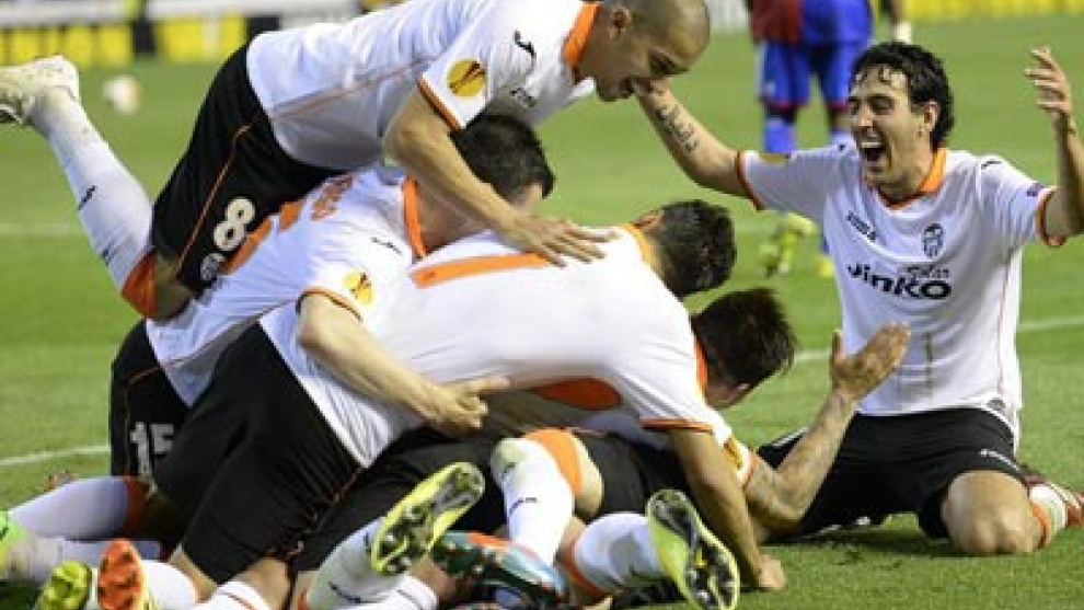 El sueño del pase a la semifinal de la Liga Europa se cumplió en una noche épica y festiva que Mestalla vivió con entusiasmo y en la que el Valencia remontó un 3-0 en contra ante el Basilea, en un partido con pocos precedentes, pero que pudo dejar resuelto antes de la prórroga.