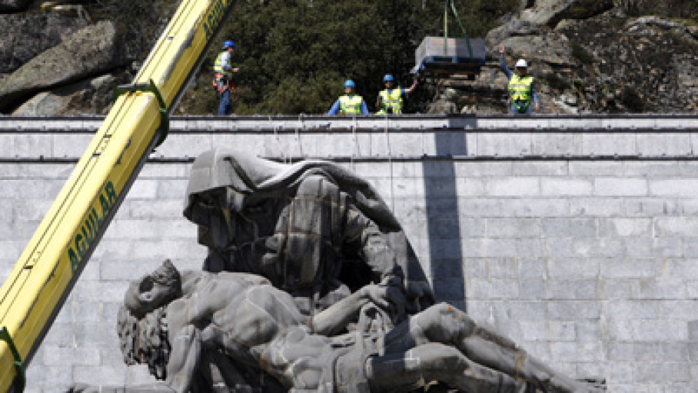 No es lo mismo trabajar con esclavos políticos que con constructoras del siglo XXI. Sobre todo para las arcas del Estado. La restauración que comenzó ayer de la escultura de La Piedad del autor Juan de Ávalos sobre el dintel de la entrada del Valle de los Caídos, a 150 metros del suelo, podría llegar a costar cerca de medio millón de euros, según varios expertos en restauración consultados por este diario.