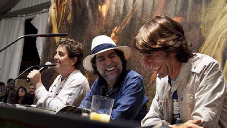 Invitados estelaresPoesía política, íntima y cotidiana. Sabina recordó su infancia y adolescencia en Úbeda, cuando las chicas "se iban siempre con el chico moreno que jugaba al baloncesto". García Montero subió el tono poético con la lectura del estremecedor La tristeza del mar cabe en un vaso de agua: "Los hombres tristes,/ que tienen en sus ojos un café de provincias,/que no saben mentir como quien dice,/que se esconden detrás de los periódicos, /que se quedan sentados en su silla (...) esos hombres manchados por las últimas horas de la ocasión perdida,/ me recuerdan a mí". Versos que jaleó el público enloquecido.