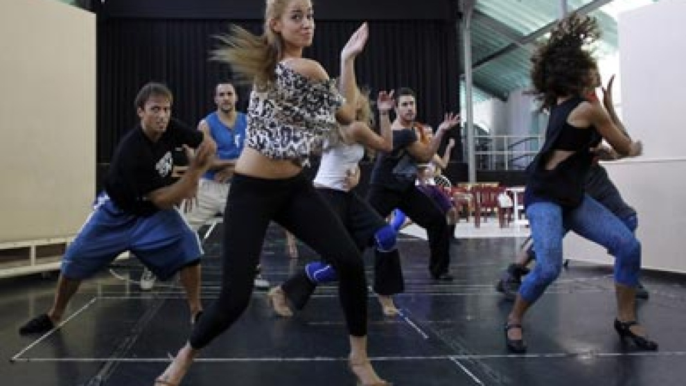 El Paseo de la Chopera de Madrid era ayer un desierto a primera hora de la tarde, pero solo en apariencia. En el interior de dos naves del centro cultural Matadero, la actividad era frenética. En la primera, la más amplia, Chevy Muraday, Premio Nacional de Danza, daba instrucciones precisas a 17 bailarines que ejecutaban coreografías frente a una fila de espejos. No había música: los propios bailarines tarareaban un tema, Llueve sobre mojado, canción que Joaquín Sabina escribió junto a Fito Páez para el disco Enemigos íntimos (1998). "Forma parte de un medley, en una escena de desamor en la que los protagonistas se tiran los trastos a la cabeza", comenta David Serrano, director de Más de 100 mentiras. "Es una versión especial del Llueve sobre mojado, van a flipar", añade.