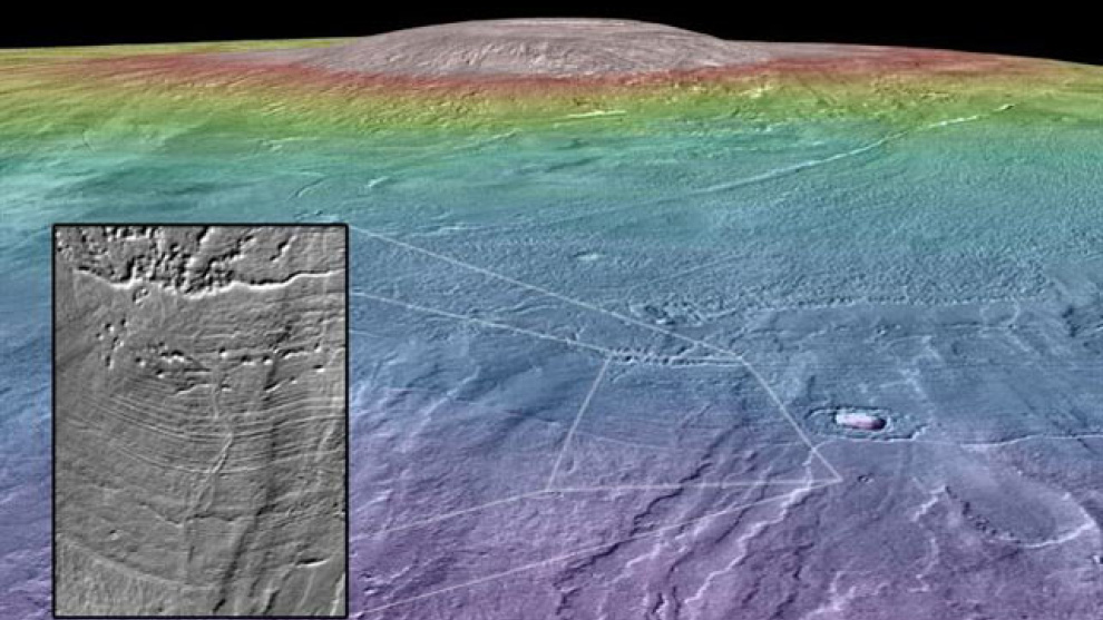 Fuego y hieloEsta similitud también ha sido corroborada por Scanlon, que a lo largo de esta investigación buscó evidencias de que la lava volcánica caliente pudo haber fluido en la región en la misma época en la que el glaciar estaba presente y, según ha explicado, halló "un montón". Usando datos del Orbitador de Reconocimiento de Marte de la NASA, Scanlon encontró formaciones de lava, similares a las que se forman en la Tierra cuando la lava entra en erupción en el fondo de un océano.