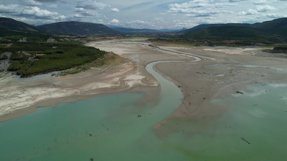 El pantano de Yesa, en Navarra, marca la cota más baja de los últimos años, ya que su presa apenas retiene, según el SAIH -Seguimiento Automático de Información Hidrográfica- el 16,5% de su capacidad de almacenaje.
