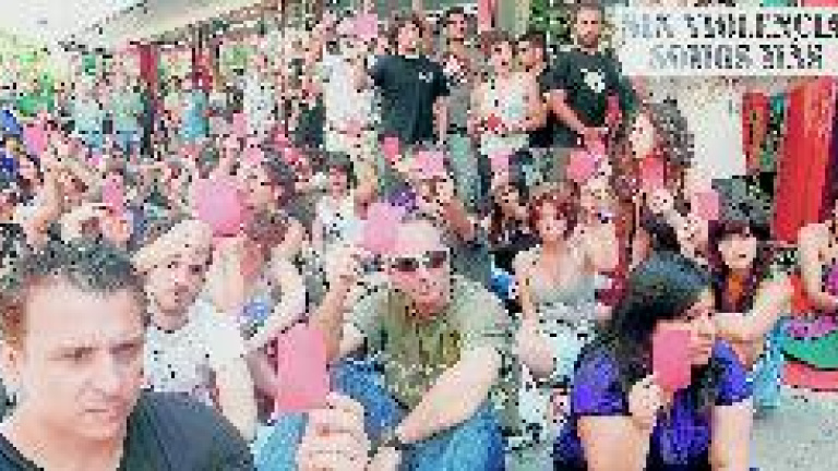 Ausencia total de altercadosLa performance dio pasó a un desfile de pancartas. La más aplaudida llevaba como lema: "Sin violencia somos más". Y esa fue la tónica de la concentración: la ausencia de altercados. Ni siquiera cuando 250 jóvenes ocuparon la Bolsa y fueron sacados a empujones por la Policía hubo enfrentamientos. Las porras se quedaron en sus fundas y hasta algunos agentes, ruborizados, aceptaron los ramilletes de flores que durante todo el día repartió un grupo de muchachas de la comisión poética.