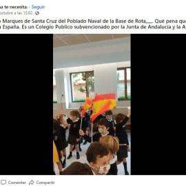 Niños con banderas "de un colegio público de Rota" que son de uno privado de Pozuelo Por Luis M. García